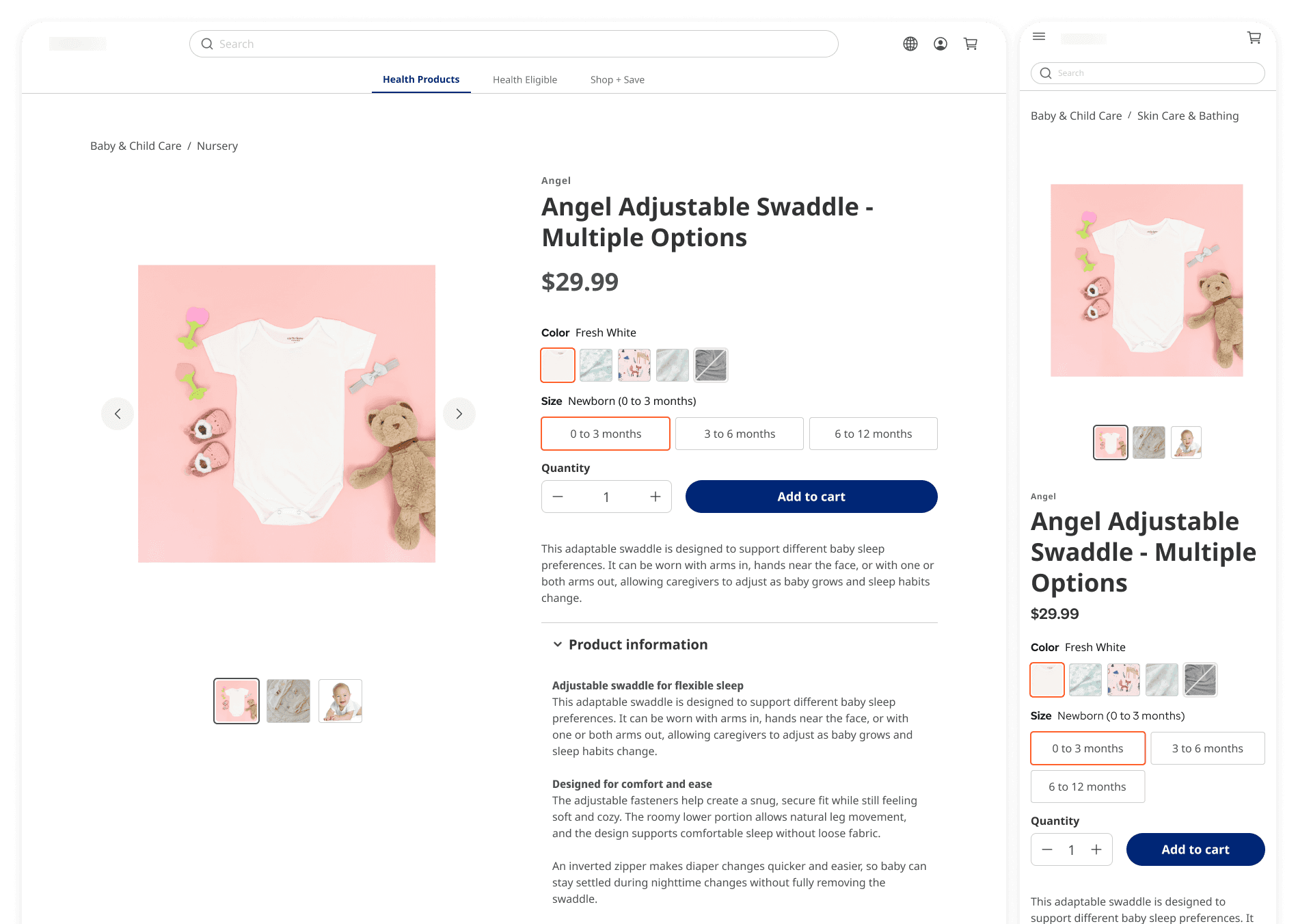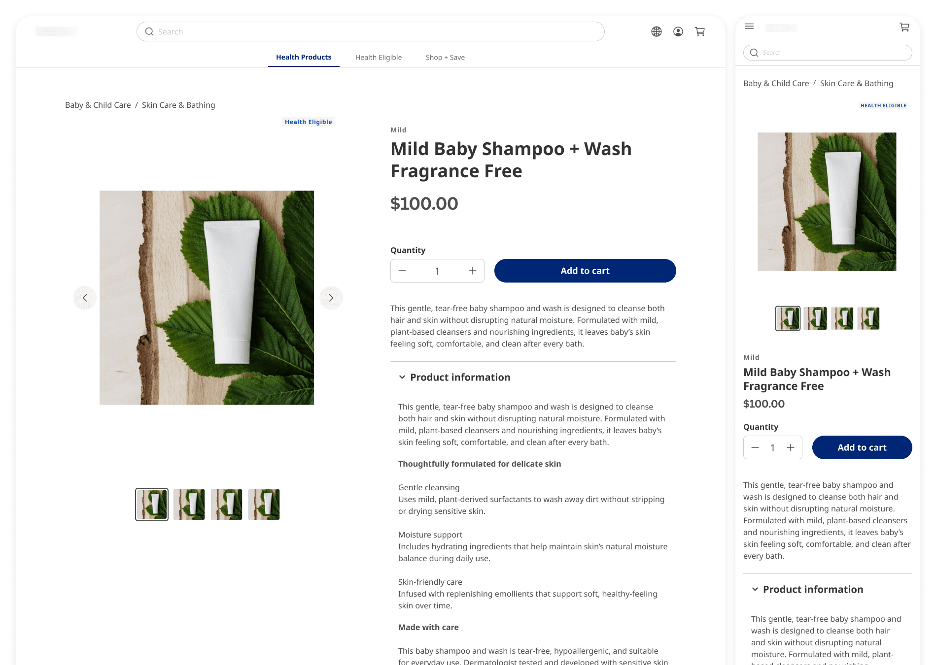 Default and multi-variant products use the same Product Details page foundation, with complexity managed through configuration rather than layout changes.