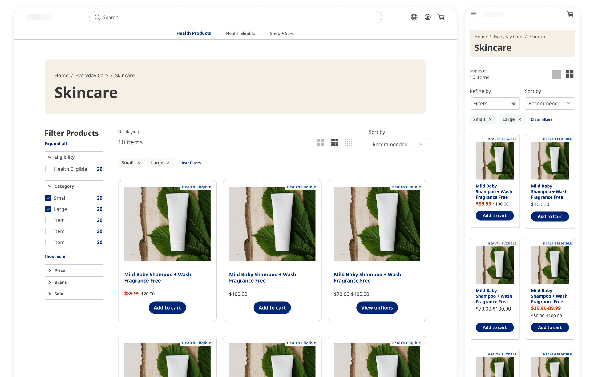 A shared catalog layout adapted across breakpoints while preserving hierarchy and behavior.