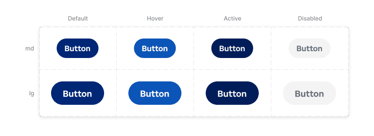 A single button component handled state and interaction consistently across sizes and contexts.